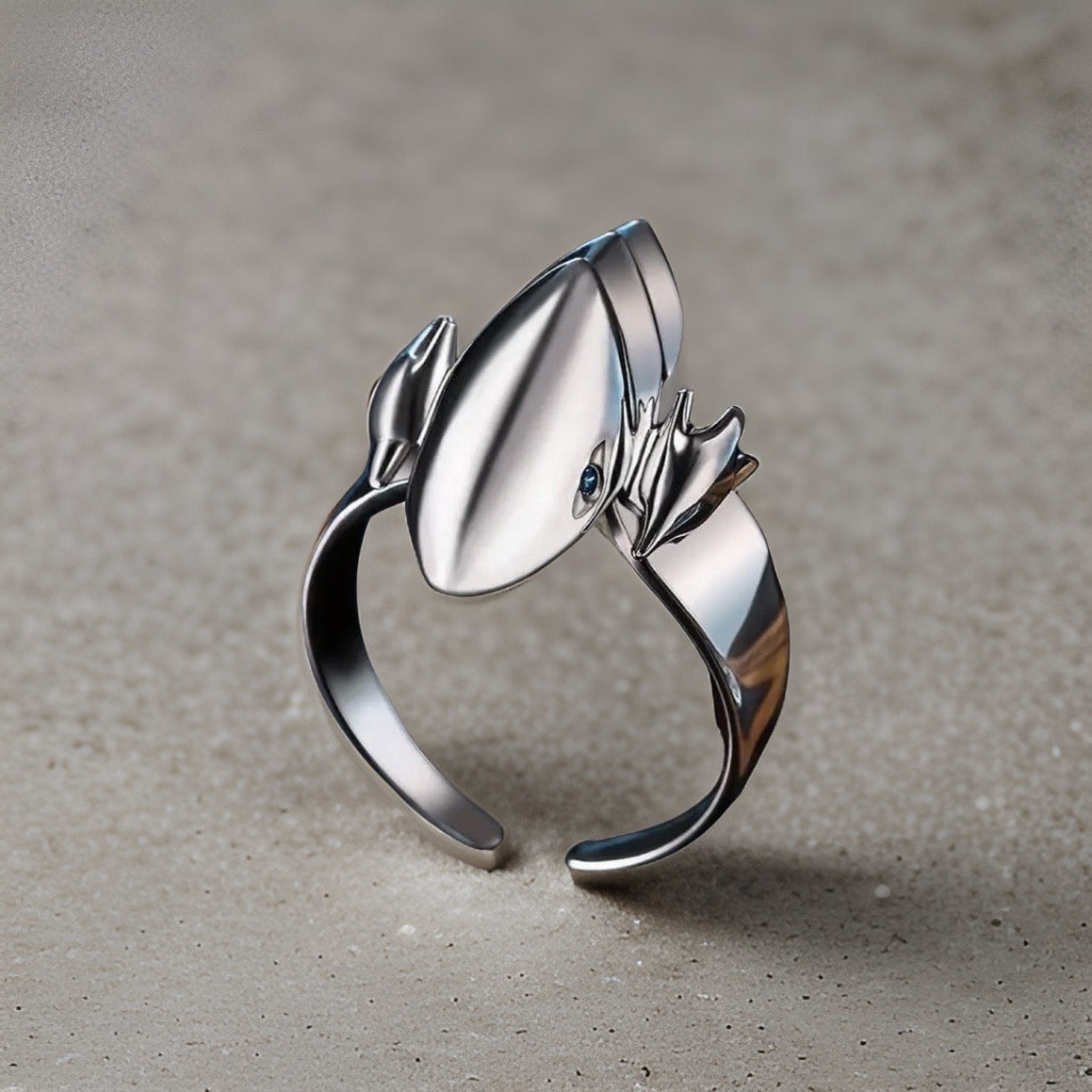 Anello del drago bianco occhi blu Unisex con misura regolabile.